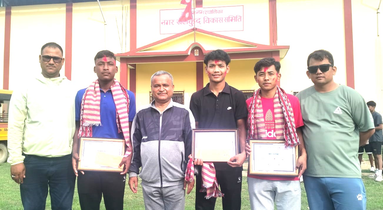 फुटबलको बी डिभिजन लिगमा उत्कृष्ट खेल्ने खेलाडिलाई मधुवनको सम्मान