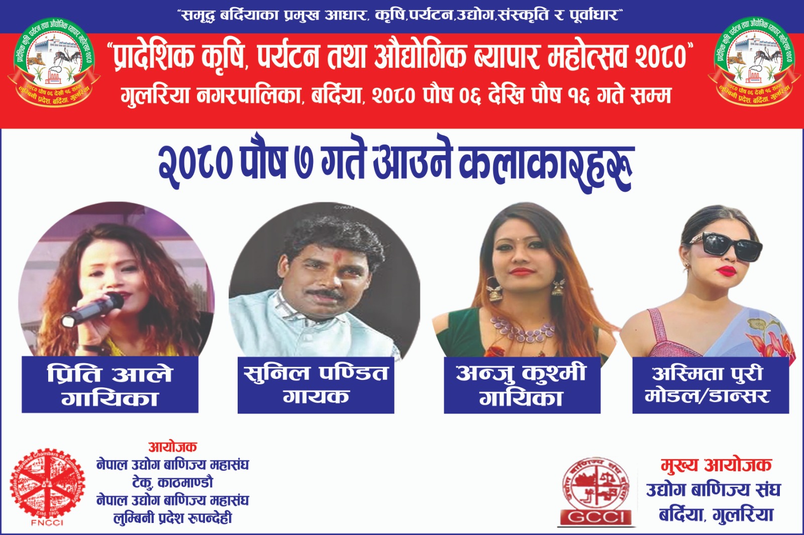 भोली प्रादेशिक महोत्सव गुलरियामा चर्चित चार कलाकार आउँने