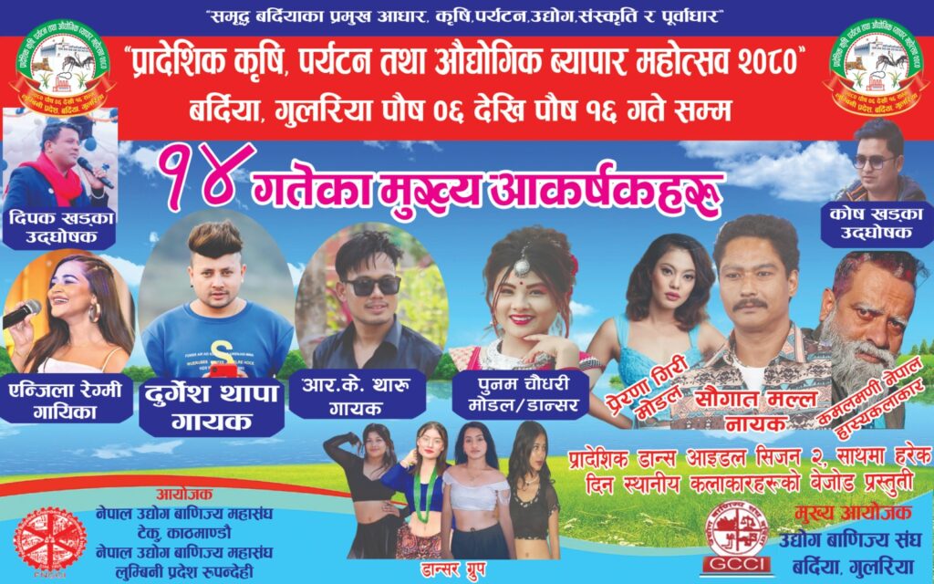 शनिबार प्रादेशिक महोत्सव गुलरियामा दुर्गेश थापा, आरके थारु र सौगात मल्ल आउँदै
