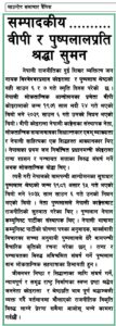 जीवनभर निष्ठा र सिद्धान्तका लागि संघर्ष गर्ने, न्यायपूर्ण र समृद्ध राष्ट्र निर्माणका स्वप्न द्रष्टा श्रद्धेय जननेता कोइराला र श्रेष्ठप्रति भाव पूर्ण श्रद्धाञ्जली व्यक्त गर्दै वर्तमानमा मौलाएको राजनीतिक विकृति विरुद्ध लाग्ने प्रेरणा सबैमा आओस् भन्ने कामना गर्दछौं ।