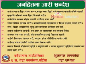 बर्दिया(मधुवन), माघ १४ गते / नेपाली समाजमा पानीको अनुचित प्रयोगले थुप्रै समास्या भइरहेका हुन्छन । स्थानियले पिउने पानीको गुणस्तर र मात्रा बारे अनविज्ञ हुँदा दैनिक जिवनमा समास्याहरु निम्तिने गर्दछन । पानी सँग सम्बन्धित समुदाय स्तरमा रहेका समस्या, नकारात्मक असर र यसको समाधानमा के गर्न सकिन्छ भन्ने उद्धेशयले अनुसन्धान गर्ने गरि स्थानिय समुदाय संग बृहत छलफल गरिएको छ ।