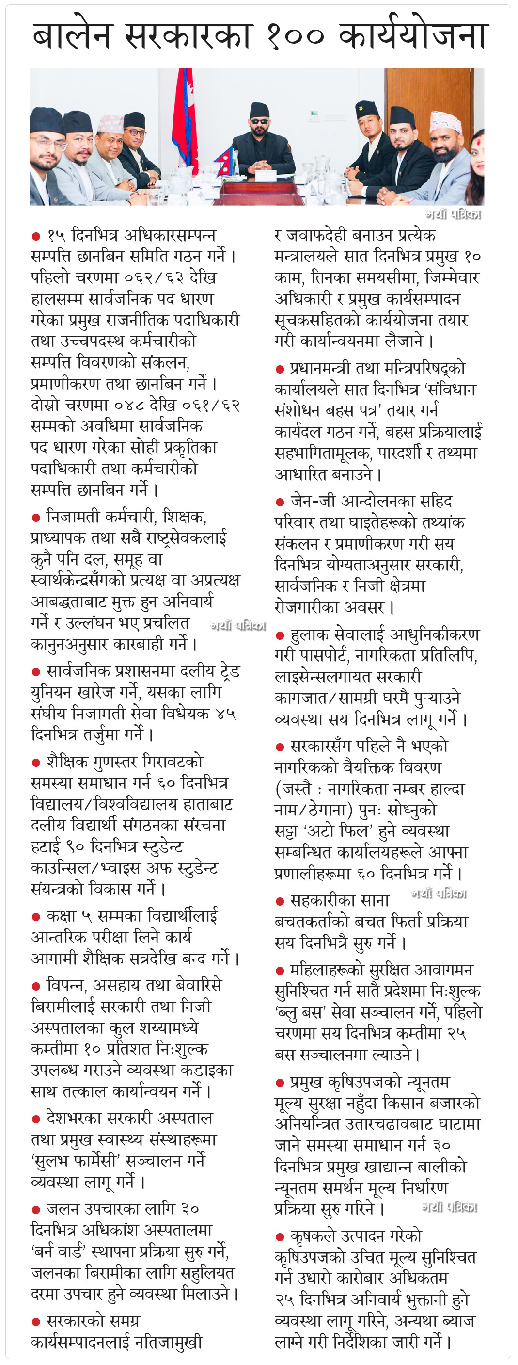 बालेन सरकारका १०० कार्ययोजना  सार्वजनिक